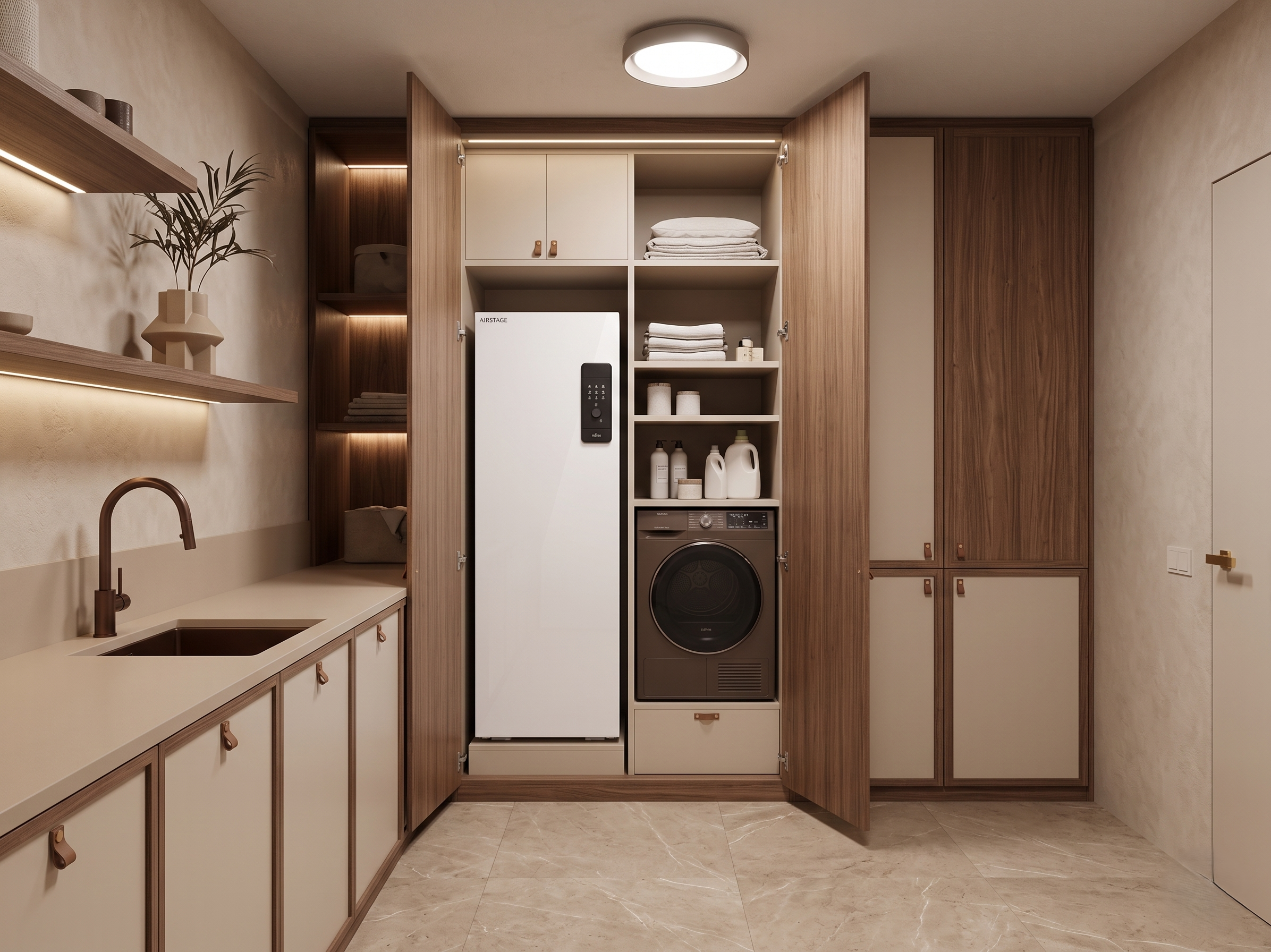 Čeprav večina uporabnikov tega ne vidi, je pomembno tudi, kaj se skriva “znotraj” naprave. Pri Fujitsu modelu je sistem zasnovan tako, da deluje stabilno in brez večjih nihanj. Manj je občutljiv na nečistoče v sistemu, delovanje je bolj enakomerno, celoten sistem pa bolj zanesljiv.